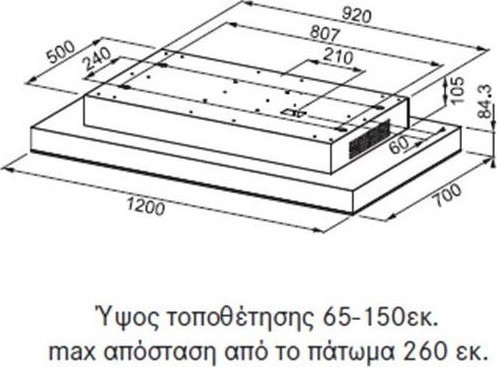 • Σημείωση 2: Ύψος τοποθέτησης 65 – 150 εκ. Max απόσταση από το πάτωμα 260 εκ.