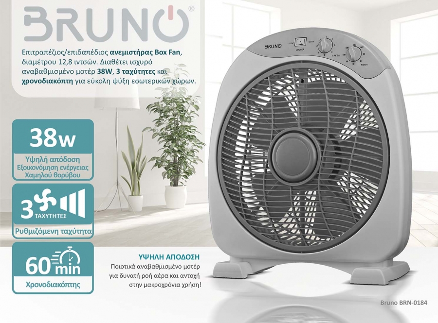 Η ειδικά σχεδιασμένη φτερωτή 5 πτερυγίων, παράγει ισχυρή ροή αέρα ενώ λειτουργεί σε χαμηλά επίπεδα θορύβου, καθιστώντας τον ανεμιστήρα Box Fan BRUNO ιδανικό για προσθήκη στην κρεβατοκάμαρα, το σαλόνι, το γραφείο και οποιοδήποτε άλλο χώρο του σπιτιού σας.