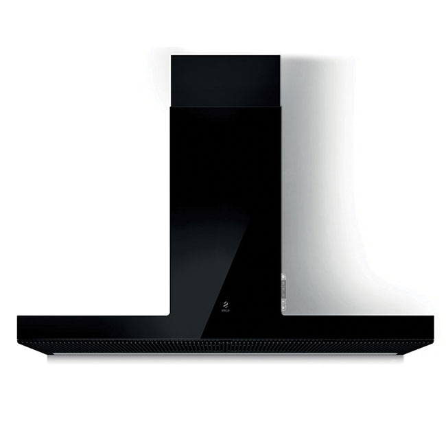 Ο απορροφητήρας της εταιρείας Elica, ενεργειακής κλάσης A, τοποθετείται στον τοίχο. Είναι σχεδιασμένος έτσι ώστε να καλύπτει τον σωλήνα εξαγωγής αέρα και να μοιάζει με καμινάδα.