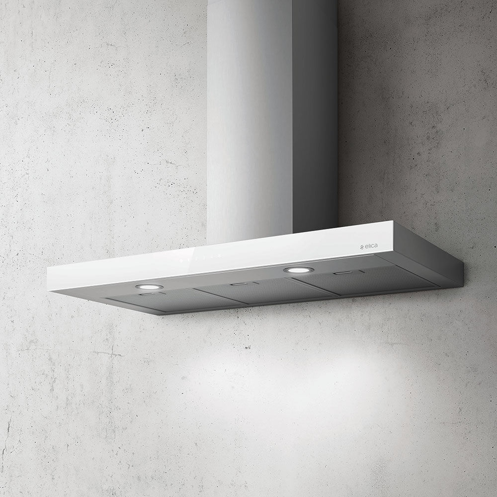 Ο απορροφητήρας της εταιρείας Elica τοποθετείται στον τοίχο. Είναι σχεδιασμένος έτσι ώστε να καλύπτει τον σωλήνα εξαγωγής αέρα και να μοιάζει με καμινάδα.