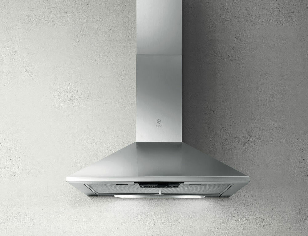 Ο απορροφητήρας της εταιρείας Elica τοποθετείται στον τοίχο. Είναι σχεδιασμένος με ένα διακοσμητικό που καλύπτει τη σωλήνα εξαγωγής αέρα και μοιάζει με καμινάδα.