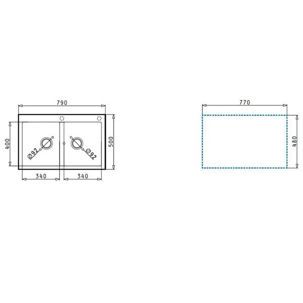 Διαστάσεις Νεροχύτη: 790 x 500mm