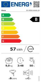 - Σταθμισμένη κατανάλωση ενέργειας** σε kWh/100 κύκλους λειτουργίας (στο πρόγραμμα Eco 40-60): 65,6 kWh / 100 rpm
